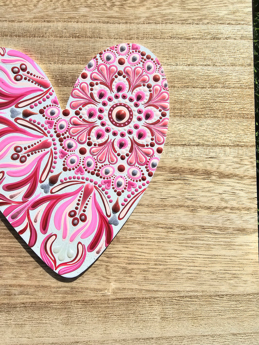 Hand-Painted Heart Dot Mandala Wooden Plaque