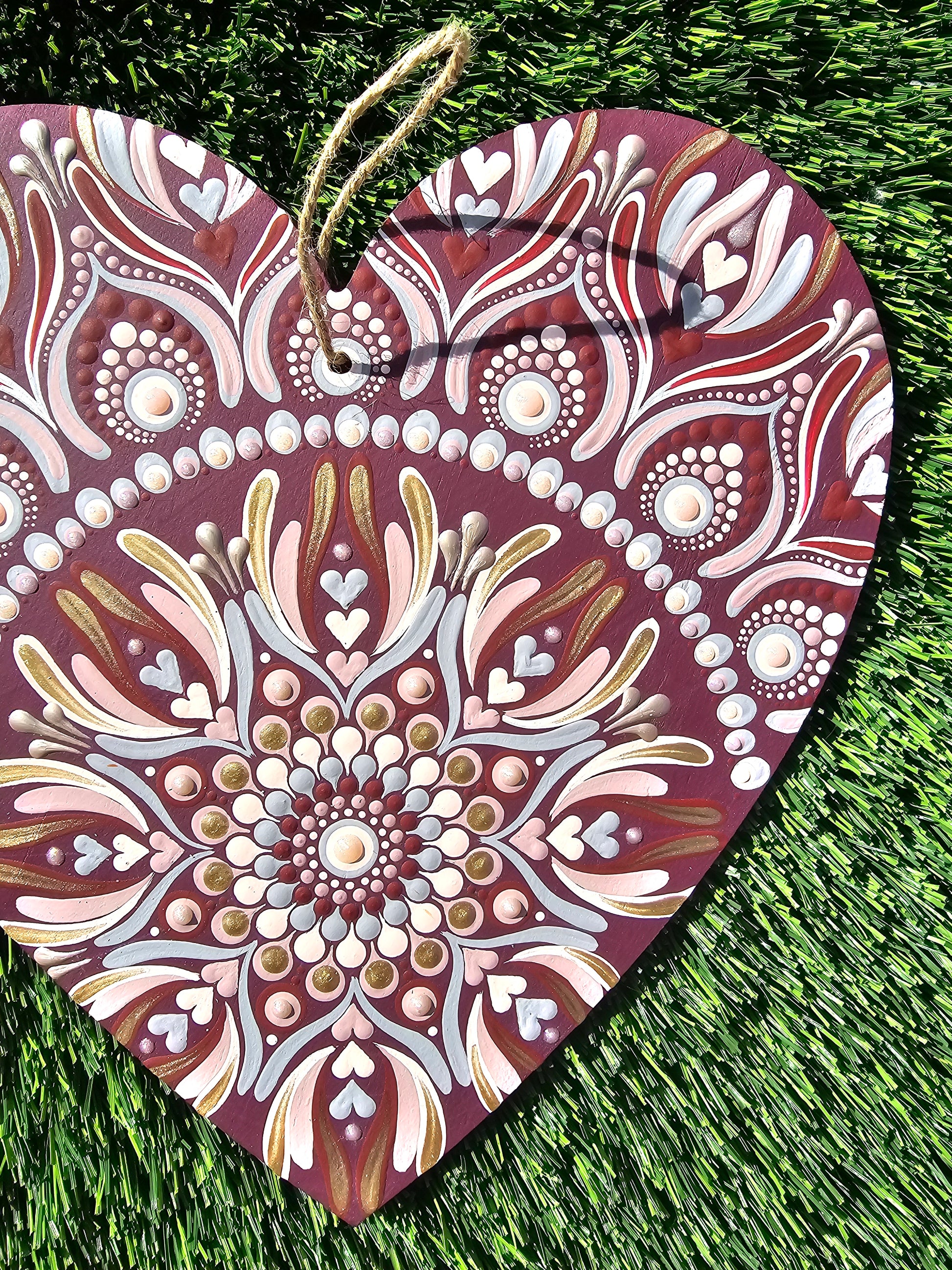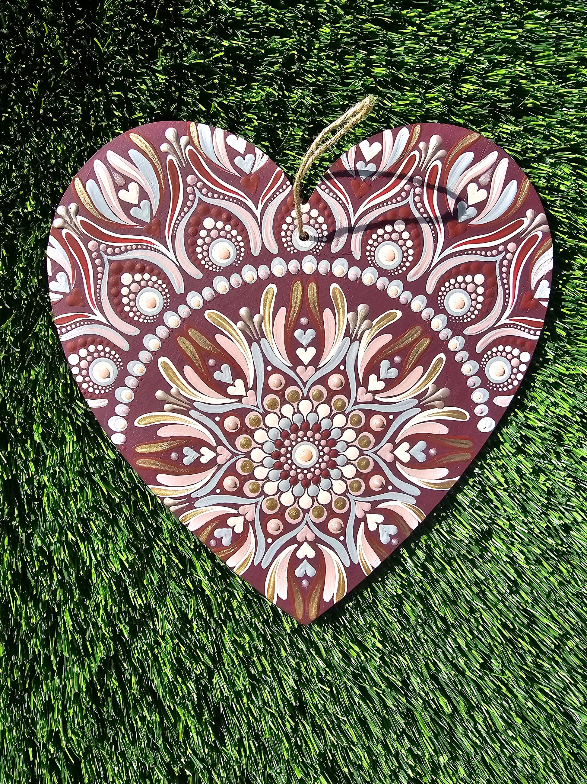 This hand-painted heart mandala is a celebration of love, harmony, and sacred beauty.